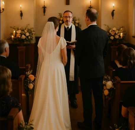 Dzień ślubu nadszedł w idealny wiosenny dzień. Kaplica była mała i ciepła, wypełniona świecami i świeżymi kwiatami. Nasi goście, skromne grono bliskich przyjaciół i rodziny, uśmiechali się, gdy stałem przy ołtarzu i czekałem.