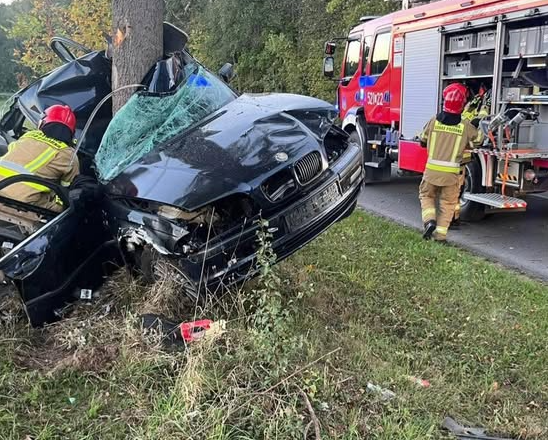 Na drodze powiatowej nr 1415L, na odcinku łączącym Potok z Zalesiem w powiecie ryckim, 23-letni kierowca BMW stracił panowanie nad autem i uderzył w przydrożne drzewo.