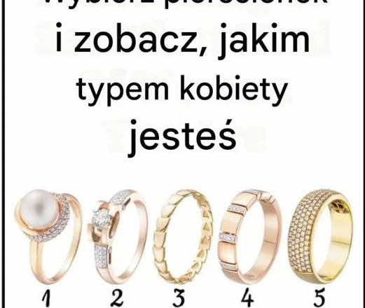To, co intuicyjnie wybierasz, często zdradza Twoje wartości, temperament i sposób, w jaki wchodzisz w relacje. Spójrz na pięć pierścionków i wybierz ten, który “kliknie” od razu, bez analiz.