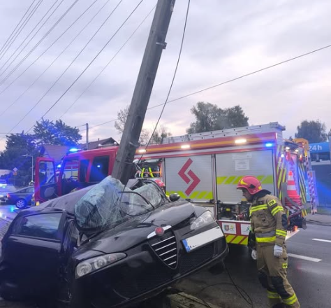 21-letni kierowca Alfa Romeo stracił panowanie nad autem i uderzył w słup energetyczny.