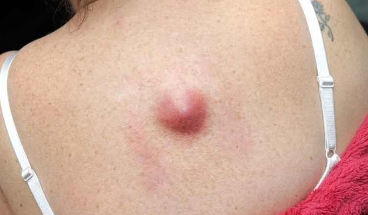 - Guzek, który wygląda na dobrze widoczny pod skórą