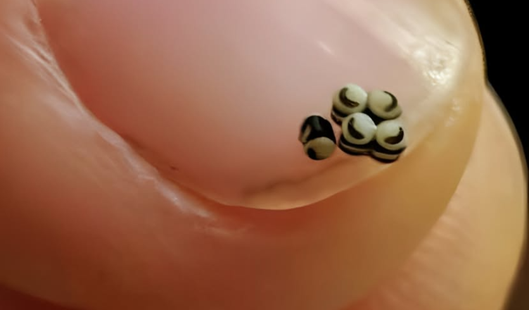 Powierzchnia sałatki była pokryta małymi czarnymi cząsteczkami przypominającymi nasiona chia . Przez sekundę pomyśleliśmy: „Może to tylko przyprawy albo jakiś modny dodatek”. Ale jej wyraz twarzy stawał się coraz bardziej napięty. Przysunęliśmy się bliżej i krew nam zmroziła. „ Nasiona” faktycznie się poruszały. Małe, niemal przezroczyste kule z ciemnymi plamkami w środku… To były jajka. Jakiś rodzaj jajek owadów. W samym posiłku.