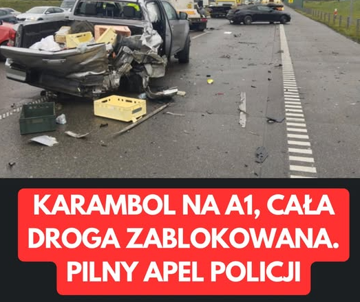„Jezdnia w kierunku Łodzi jest całkowicie zablokowana po zderzeniu samochodów osobowych z pojazdem ciężarowym. Wyznaczono objazdy przez drogi krajowe DK43, DK46 oraz DK91. Prosimy kierowców o zachowanie ostrożności i stosowanie się do wskazań służb.”