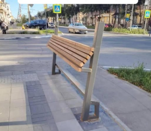 Po drugiej stronie znajduje się podnóżek, o który mogą się oprzeć rowerzyści czekając na zielone światło, a po tej stronie znajduje się podłokietnik, o który mogą się oprzeć piesi.
