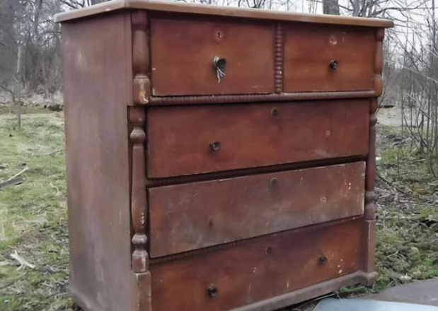 Drewno, choć nie było szczególnie cenne, wymagało dokładnej obróbki, dlatego starannie odtłuściła powierzchnię i usunęła stare defekty za pomocą papieru ściernego.