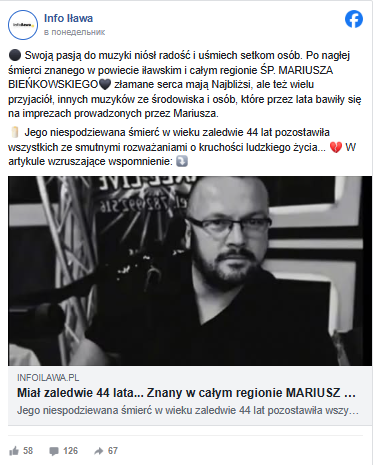 „Odszedłeś niespodziewanie w sobotni wieczór (29.11.2025), podczas tego, co lubiłeś robić najbardziej, czyli grania i śpiewania na imprezach. Śmierć zakradła się niespodziewanie, jak złodziej. Byliśmy przy Tobie do końca reanimacji, modląc się, prosząc Pana Boga, aby Twoje serce ruszyło… jednak czas płynął, a serduszko nie wracało”