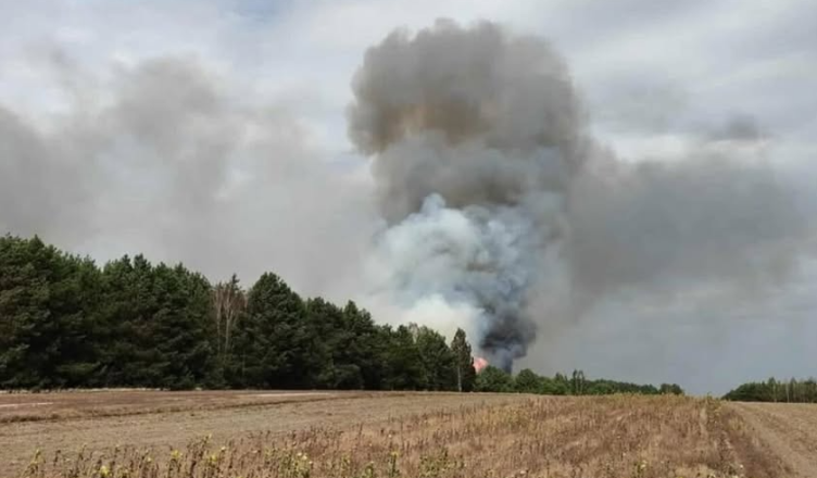 Płomienie szybko wydostały się poza jego granice i rozprzestrzeniły się na sąsiednie pola oraz fragment pobliskiego lasu.