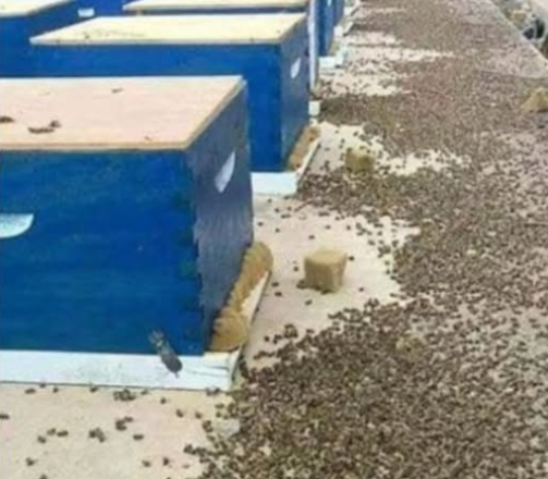 Niestety, mamy tu tysiące martwych pszczół, ofiar pestycydów w naszym kraju. Niestety, gdzieś tutaj nasz cykl życiowy się zatrzymuje.