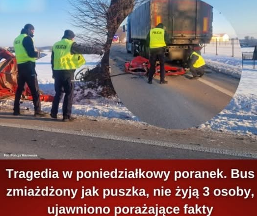 Kierujący busem uderzył w tył pojazdu ciężarowego z naczepą, który był zaparkowany bezpośrednio na jezdni. Siła tego zderzenia była na tyle duża, że auto pasażerskie natychmiast straciło stabilność i zjechało do przydrożnego rowu, gdzie ostatecznie rozbiło się na grubym drzewie. Fotografie z miejsca zdarzenia ukazują przerażającą skalę zniszczeń, jakie dotknęły konstrukcję busa.