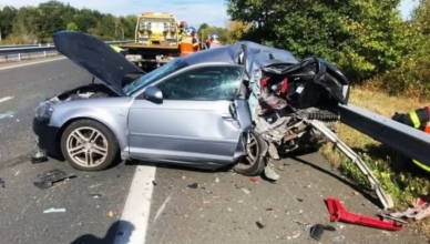 Dramatyczny wypadek pod Grudziądzem w woj. kujawsko-pomorskim. Tir z drzewem zderzył się z fordem, którym podróżowała młoda para z rocznym dzieckiem. Ponad pół